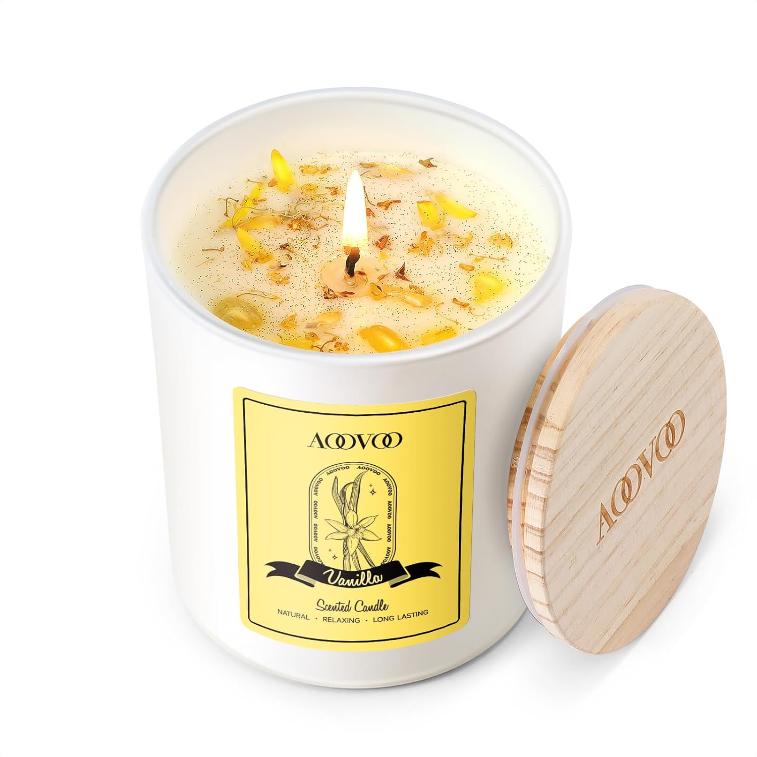 Specification Details:Candle type: Scented Candles for home scented Brand: AOOVOO Product: Scented Candle decorated with dried flowers and crystalFunction: Cleansing, Aromatherapy, Healing, Relax ,Positive Energy, meditation Weight: 7ozIntroducing our luxurious Aromatherapy Candle with embedded crystals, specially designed to promote healing and relaxation. Made with 100% natural soy wax and infused with pure essential oil, this candle produces a soothing and calming scent that eases stress and anxiety. Natural crystals are believed to possess unique energies that can benefit your well-being. They are said to radiate positive vibes, help balance emotions, and promote relaxation and healing. Whether used in meditation or as decorative elements, crystals can enhance your environment by infusing it with calmness and tranquility. AOOVOO candle makes a great choice of get well soon gifts, feel better gifts, after surgery gifts, inspirational gifts, sympathy gift, BFF, friends, gift for mom, mothers day gifts for mom, Valentine's Day gift for girlfriend, boyfriend, wife, husband, dad, Christmas gift Christmas candle, candles for home scented, soy candles non toxic, candle gift, soy candles, scented candles, soy wax candles, candles gifts for women