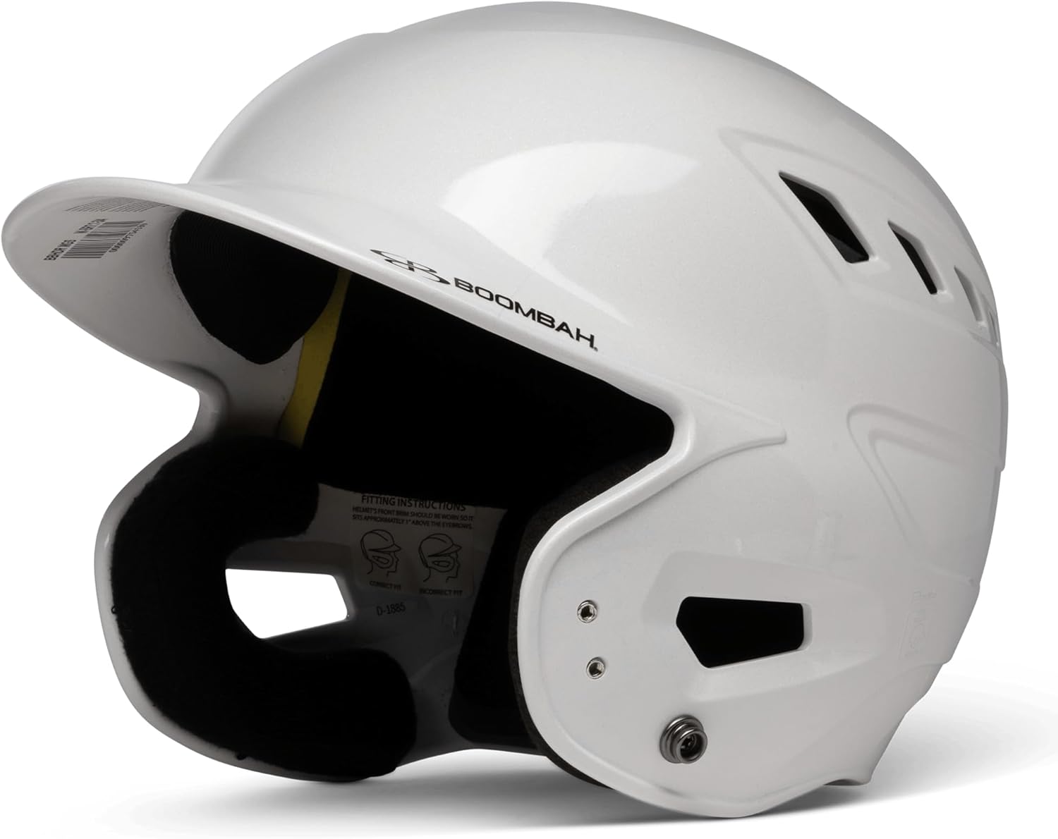 Boombah DEFCON Baseball / Softball Metallic Gloss Solid Batting Helmet - Multiple Colors - Two Sizes Our DEFCON model batting helmets are part of our full line of performance centric baseball and softball gear. Key features include: - Lightweight High Impact ABS Shell - Dual Density Padding System for Protection and Comfort - Moisture Wicking Liner - Venting System designed for Maximum Airflow - Pre-drilled ready to attach mask and chin strap - Certified to Meet NOCSAE Standard - Offered in Junior and Senior Sizing - Junior Size fits 6 1/4" - 7" - Senior Size fits 7" - 7 3/4" - WARNING: Do not use adhesive when attaching mask to helmet. This includes thread-lock, glue, epoxy etc. Use may cause shell damage or degradation that may not be visible and may cause personal injury. About Boombah: Boombah baseball and softball products are part of our huge family of sporting gear, apparel and accessories. We design and manufacturer our own line of high quality sports equipment and gear for the sports you love.
