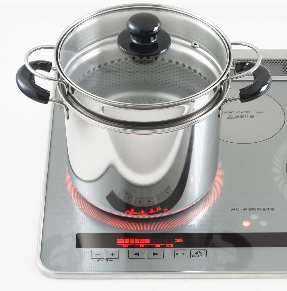 Heat efficient 3-ply steel Can be used efficiently with gas fires as well as 200V and induction cookers. Made in Japan