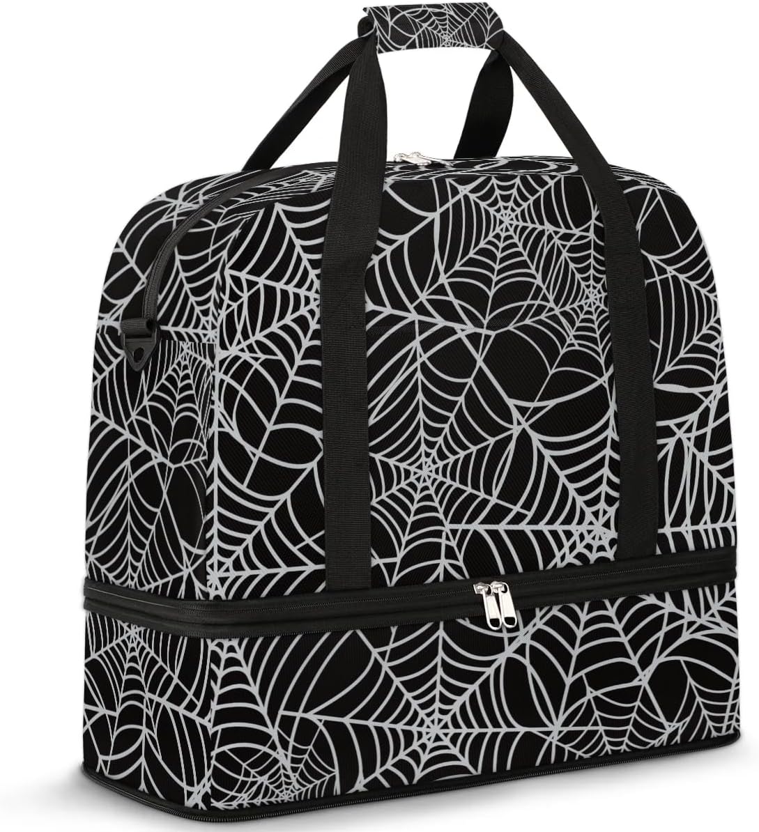 Foldable Travel Duffel BagGender: Female/MaleClosure Type: Double zipperMaterial: 100% polyesterDimensions: 20.07 × 7.87 × 18.11 inchesFeature1 × main pocket for essentials.1 × Small zip pocket for wallet, keys or phone.2 x small mesh pockets to store your cards, passports, snacks and more.1 × Front outer pocket for easy carrying of small items.2× side pockets for water bottles, umbrellas, etc.1 × Bottom zip pocket for shoes, clothes or dirt.Washing InstructionsHand wash in cold or lukewarm water.Hang to dry.Wash separately to avoid staining.Ideal Gift: A reliable sports gym bag for Halloween, Thanksgiving, Christmas, Valentine's Day, New Year's Day, Birthday, Easter.