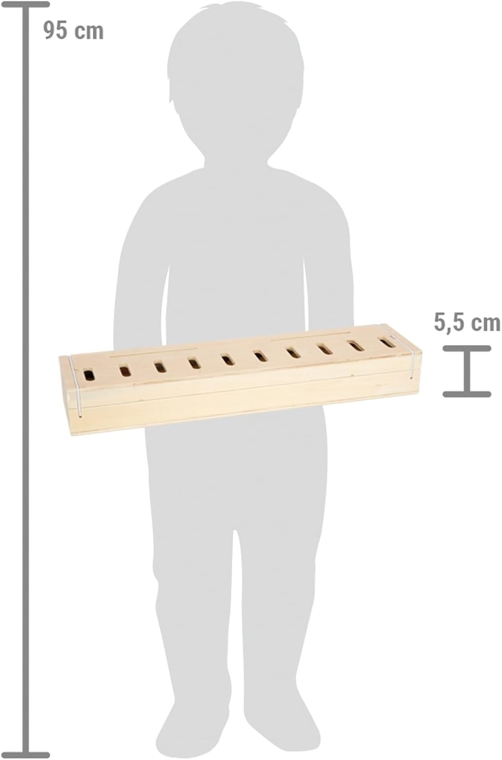This high-quality wooden picture sorter box offers a variety of reasons to discover. It contains three slats of images printed on both sides and 60 image tiles on the subjects: mobility, animals, numbers, shapes, garments, and fruits and vegetables. By recognizing, pairing and inserting, children train their fine motor skills as well as their ability to recognize colors and shapes. At the same time, motives can also be used to learn words, thus contributing in a playful way to expand the vocabulary.